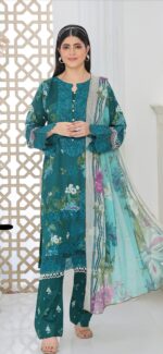 Step into elegance with this premium Pakistani three-piece outfit crafted for comfort and style.