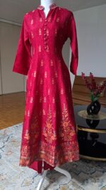 The smooth, lustrous finish of the silk fabrics adds a regal touch, making this outfit perfect for weddings, festive celebrations, parties, and special occasions. Designed to blend classic heritage with modern elegance, this Anarkali frock offers a flattering silhouette and superior comfort.